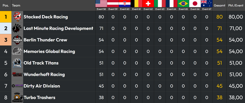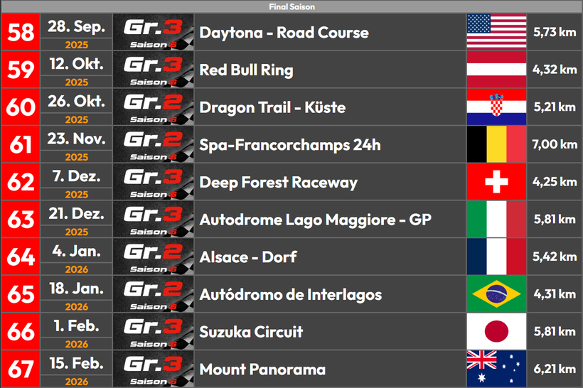 Hallo Rennfahrer, im Eventkalender findest du die Termine und Events die ca. alle 2 Wochen Sonntags gegen 18:30 Uhr stattfinden.